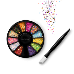 Iridescent Circle mini jewels comes with 12 colours and an applicator stick, and comes packaged in a GelMoment organza sachet.